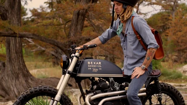 Described affectionately as a rasta-redneck-yoda Colt Wrangler is the Bull riding, rock-n-roll playing, custom motorcycle building, Texan artisan that is defining the future of cool in Custom Bike Building in San Antonio and Texas.